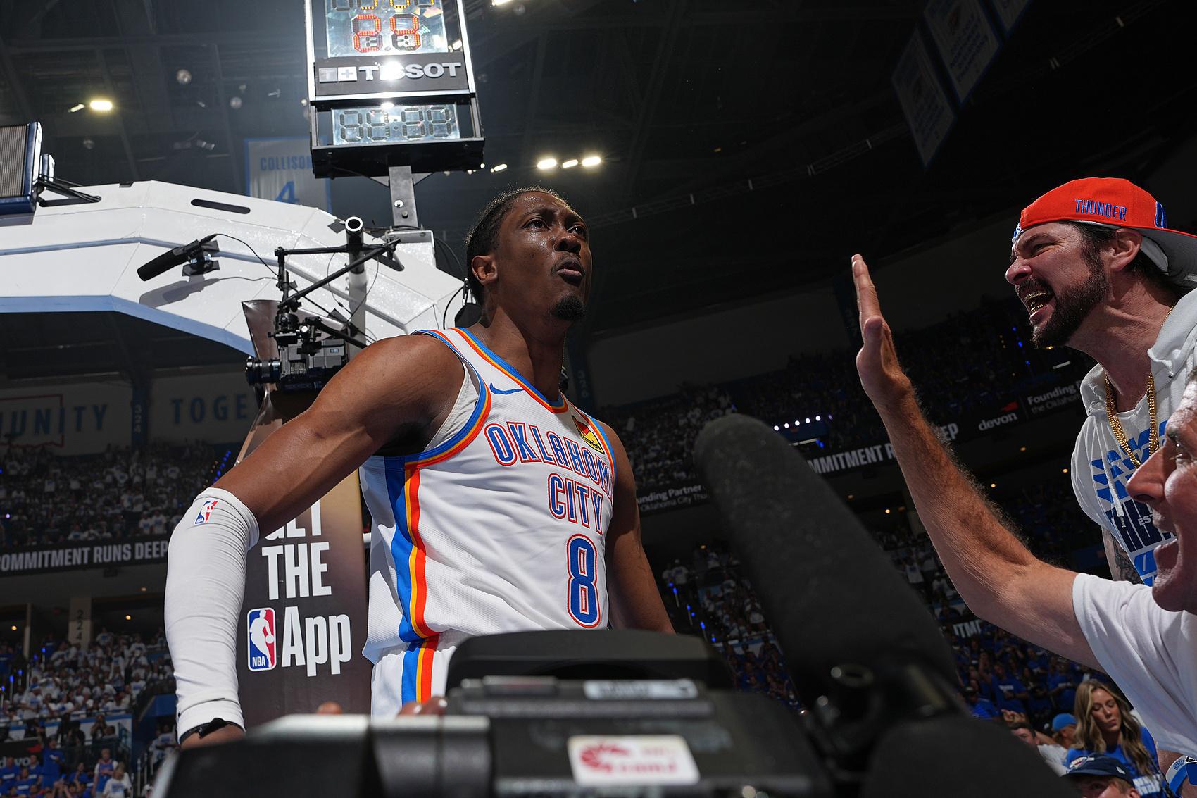 此役,雷霆球员杰伦-威廉姆斯出战34分47秒,25投14中,三分5中3,罚球12中9,轰生涯季后赛得分纪录的40分,另有6板4助,正负值+14。